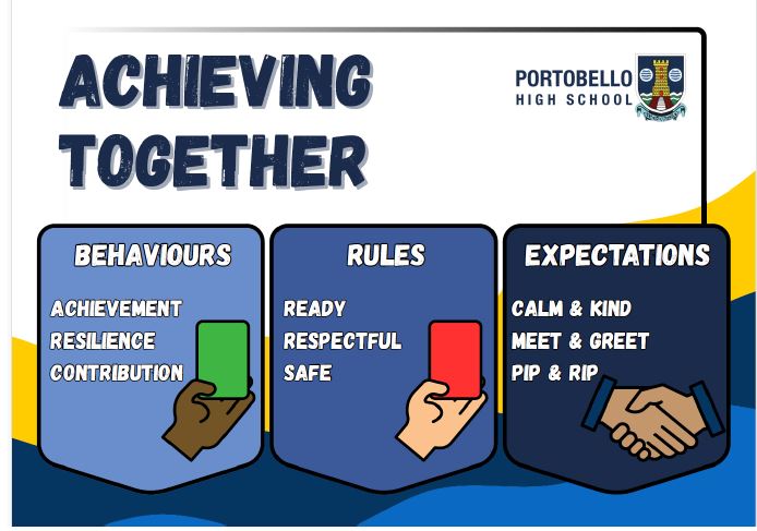 At Portobello High School we are committed to developing positive relationships within our school community and believe this to be essential in encouraging the types of behaviour we want to see from our young people. Our ethos of promoting positive relationships and achieving together is underpinned by the following initiatives: